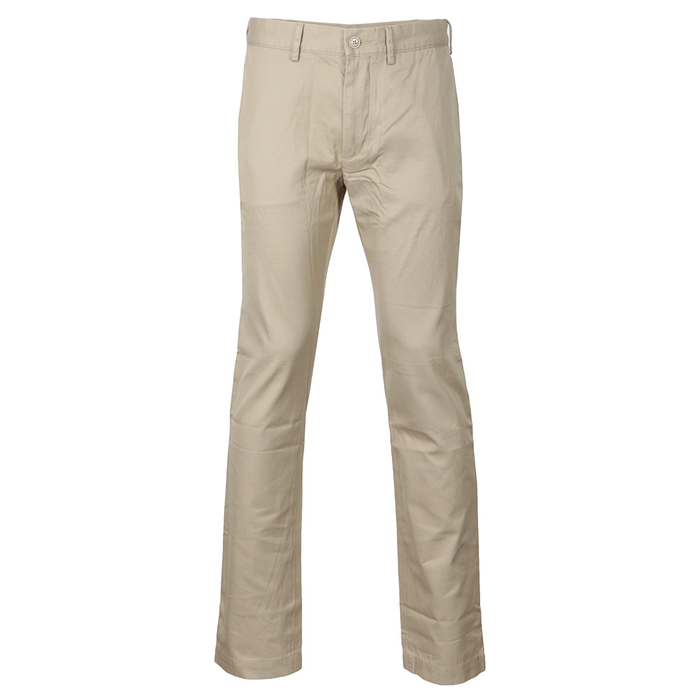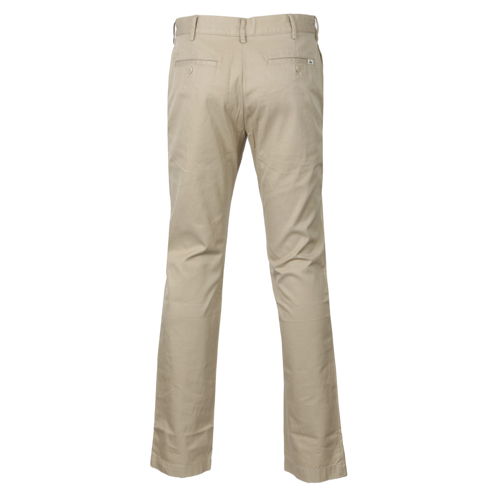 Lacoste HH8238 Slim Fit, em bege. Calça de estilo elegante que pode ser usada casualmente. Confeccionada em tecido 100% algodão, com design de cinco bolsos, zíper com fecho de um único botão e etiqueta da marca Lacoste costurada na abertura do bolso traseiro.