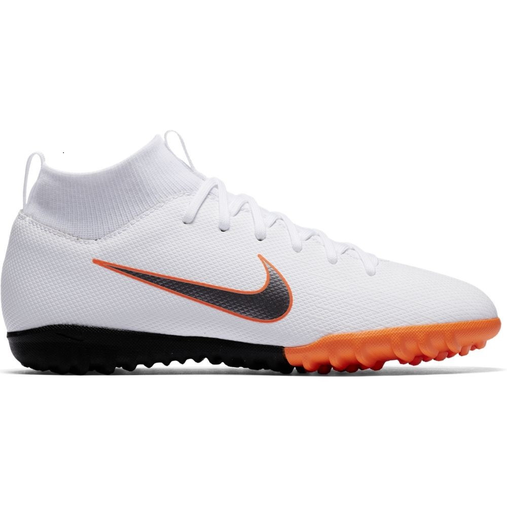 Nike Jr.MercurialX Superfly VI Academy envolve o pé em tecido e material sintético para um suporte confortável e toque de bola excepcional em campos com carpete