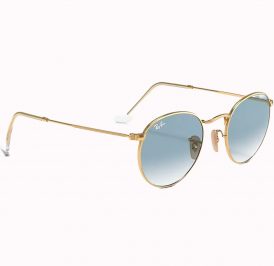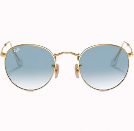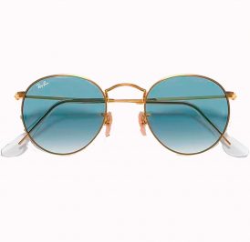 Os óculos de sol Ray Ban Round Metal recebem uma novidade absoluta da Ray Ban: lentes planas. As lentes planas espelhadas (base 2.5) combinadas com a moldura dourada brilhante são espetaculares.