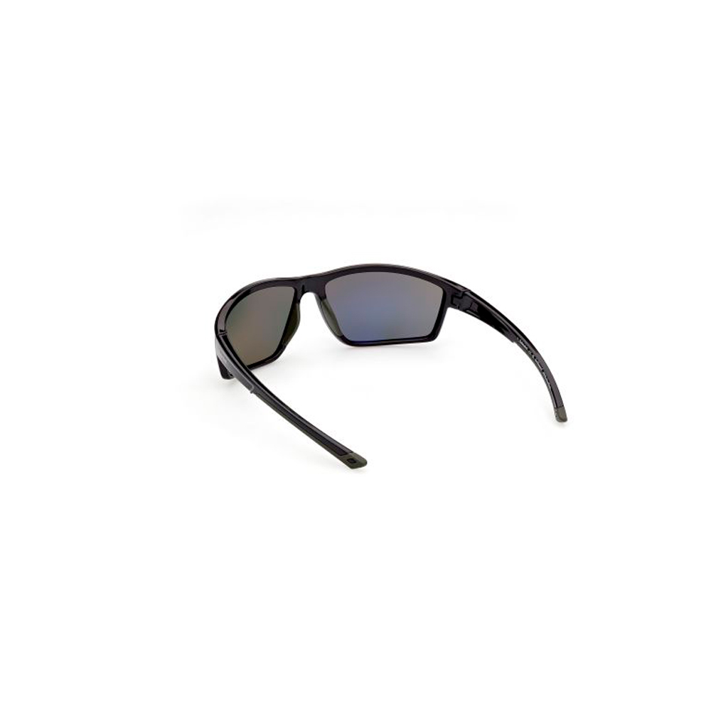 Óculos de sol Timberland em preto. A armação preta fosca é complementada por lentes com acabamento Smoke Polarized. Este modelo possui formato retangular injetado.