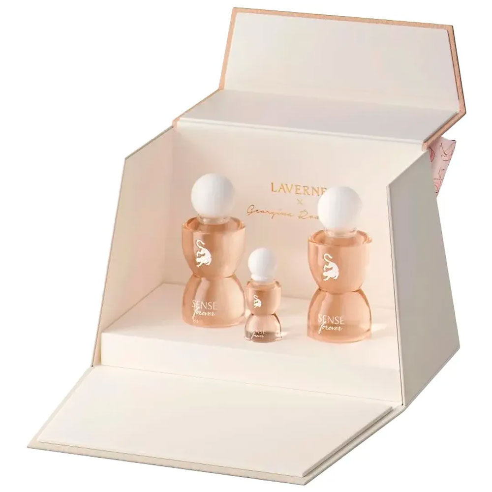 Composto por um perfume marcante, um spray delicado para os cabelos e uma versão mini do perfume, este kit permite que você carregue sua fragrância favorita para qualquer lugar, mantendo sempre um toque elegante e envolvente. Desenvolvido em colaboração com Georgina Rodríguez, o Sense Forever Laverne combina design moderno, aroma feminino sofisticado e praticidade, tornando-se ideal tanto para uso pessoal quanto para presentear alguém especial.