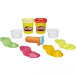 Conjunto de Play-Doh com o qual você pode criar cenas congeladas que você pode manter como bolas de neve. As figuras de Anna e Elsa vêm junto com instruções para modelar Olaf e Sven.
