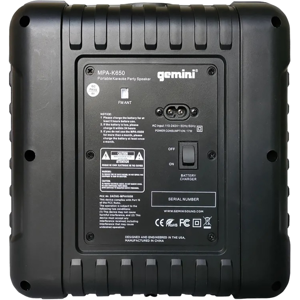 Speaker Gemini MPA-K650 Portatil Recarregavel Bluetooth Lights