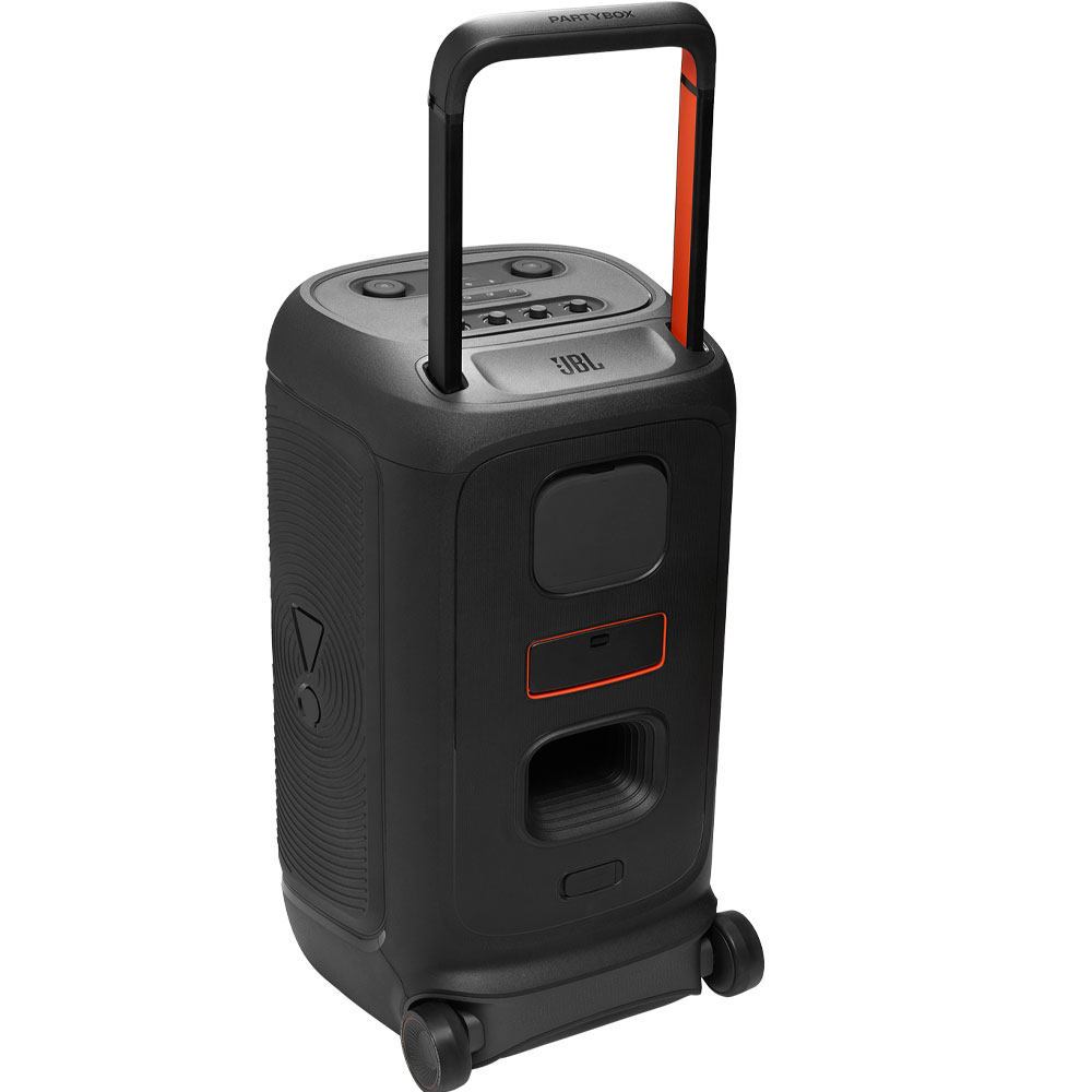 A diversão não tem hora para acabar: com até 15 horas de reprodução com uma única carga, o JBL PartyBox 520 acompanha o ritmo da sua festa do começo ao fim. E se precisar de ainda mais tempo, é só substituir a bateria (vendida separadamente) ou recarregá-la por apenas 10 minutos para ganhar até 2 horas extras de música. A mobilidade também é um destaque, com alça extensível e rodas que facilitam o transporte para qualquer lugar — da sala ao quintal, da praia ao camping.
