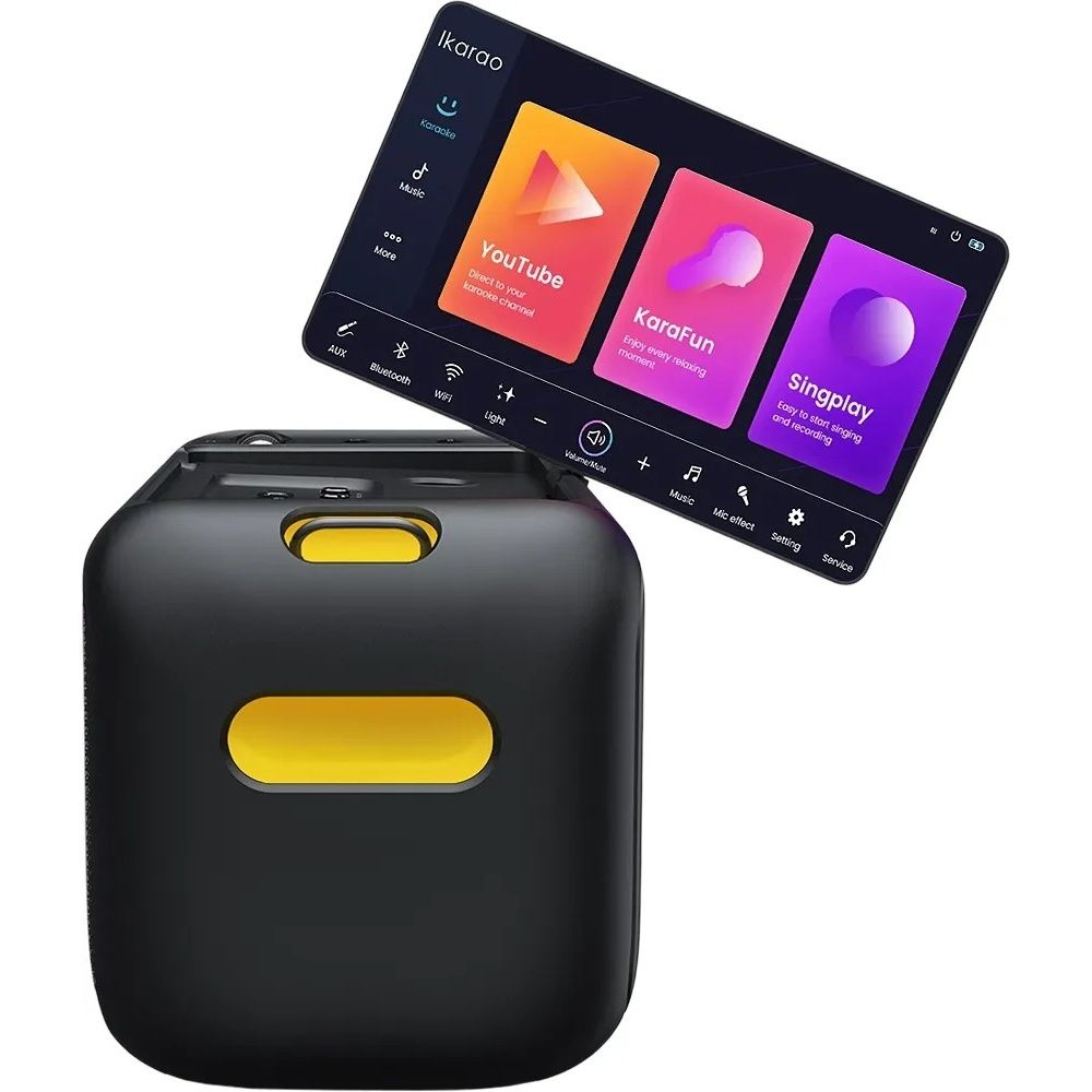 A experiência fica ainda melhor com o microfone sem fio profissional incluído, que se conecta ao speaker sem complicações e oferece até 30 horas de uso. Além disso, conta com efeitos de som personalizáveis, ajustando a voz para cada performance.