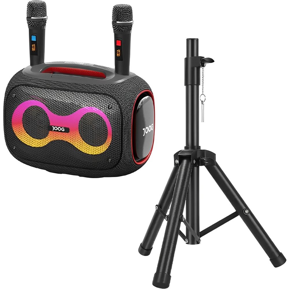 Speaker Joog Pair 1000 com 2 Microfone 130W IPX6 TWS Cinza + Tripé HS-01