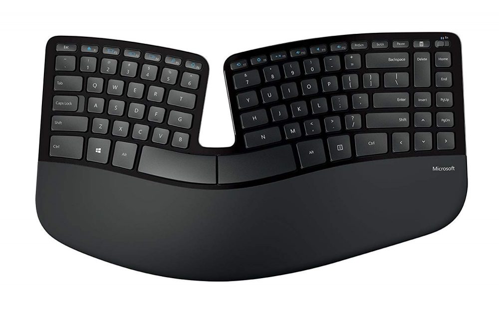 O teclado ergonômico e mouse Sculpt é construído em design ergonômico avançado. O Sculpt Ergonomic Desktop é baseado em princípios ergonômicos avançados, com um layout de teclado dividido que mantém os pulsos e antebraços em uma posição relaxada, e um apoio para as mãos almofadado para fornecer apoio ao pulso. O formato do teclado abaulado reduz e corrige a pronação do punho que pode causar dor e mobilidade limitada. Verdadeiro conforto para uma produtividade duradoura – Sculpt Ergonomic Desktop é projetado para produtividade, com um olho na excelência ergonômica.