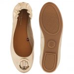 Sapatos femininos Tommy Hilfiger, feitos de couro, em ouro. Ideal para uso diário.