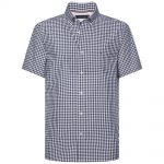 Camisa Tommy Hilfiger de corte Regular com microdiseño de letras de la brand, botonadura com contraste, cuello italiano, manga curta e puño simples. MW0MW12642