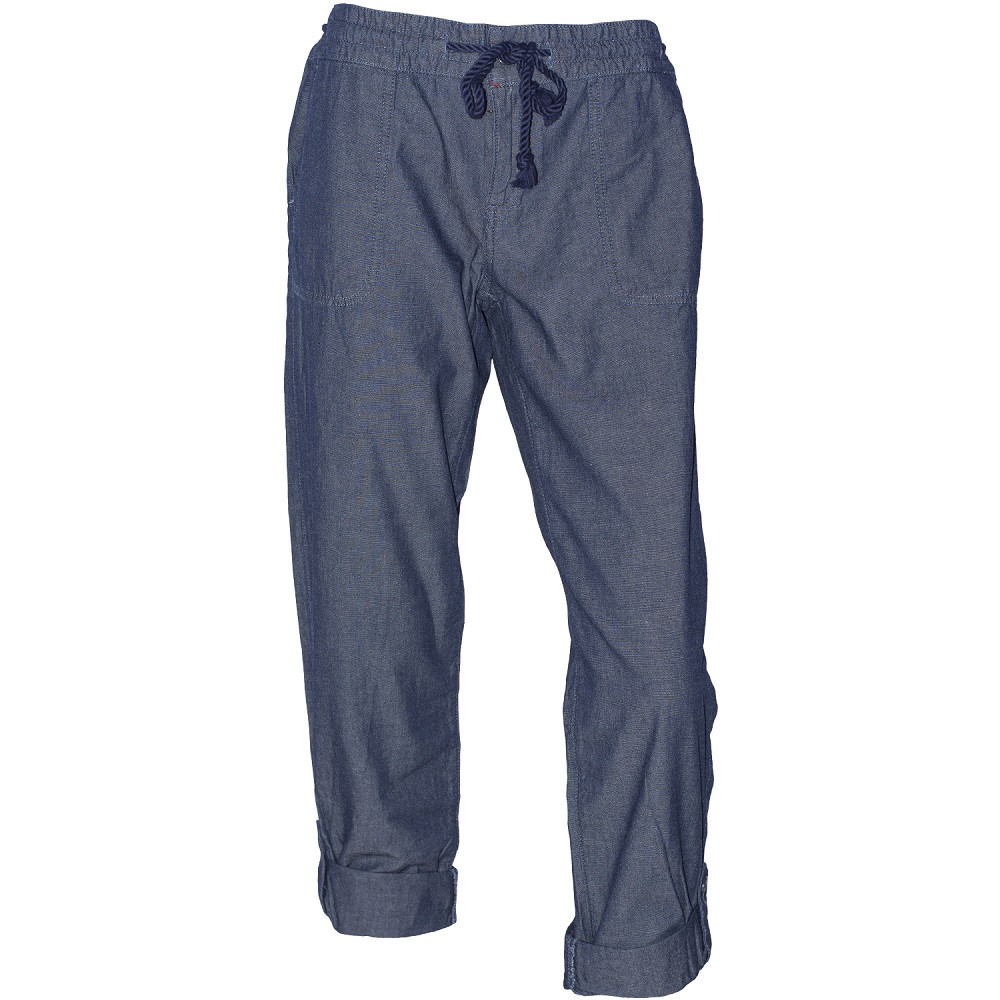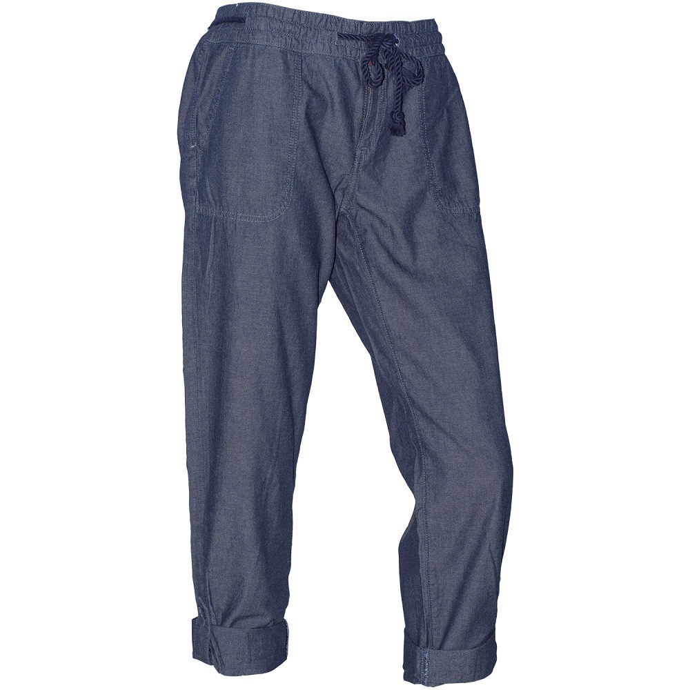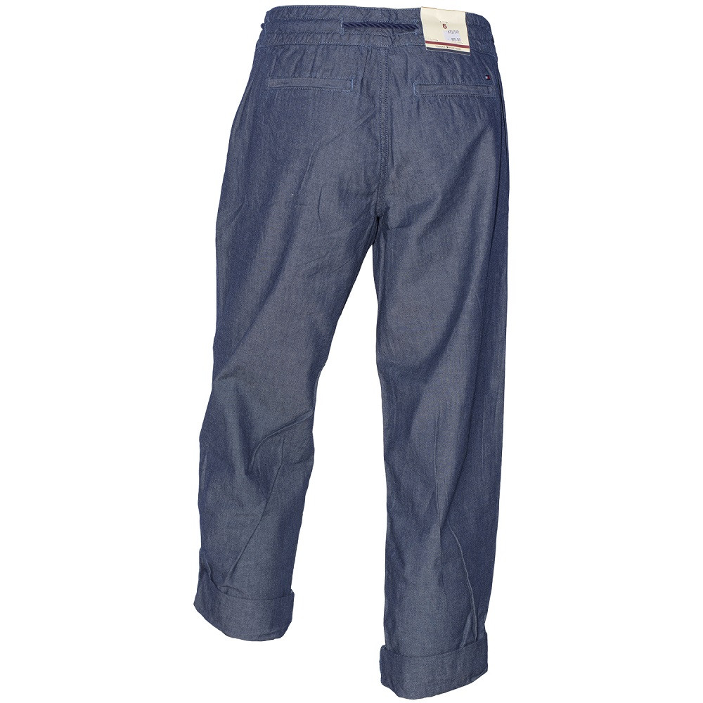 Calça feminina Tommy Hilfiger, na cor jeans escuro. Possui fecho em zíper e regulagem em cordão.