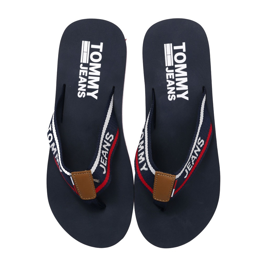 Chinelos azuis para homens da Tommy Jeans, uma linha esportiva do império da marca americana Tommy Hilfiger. Calçados esportivos com estampas e materiais diferenciados, é o que a Tommy Jeans tem a oferecer aos seus clientes.
