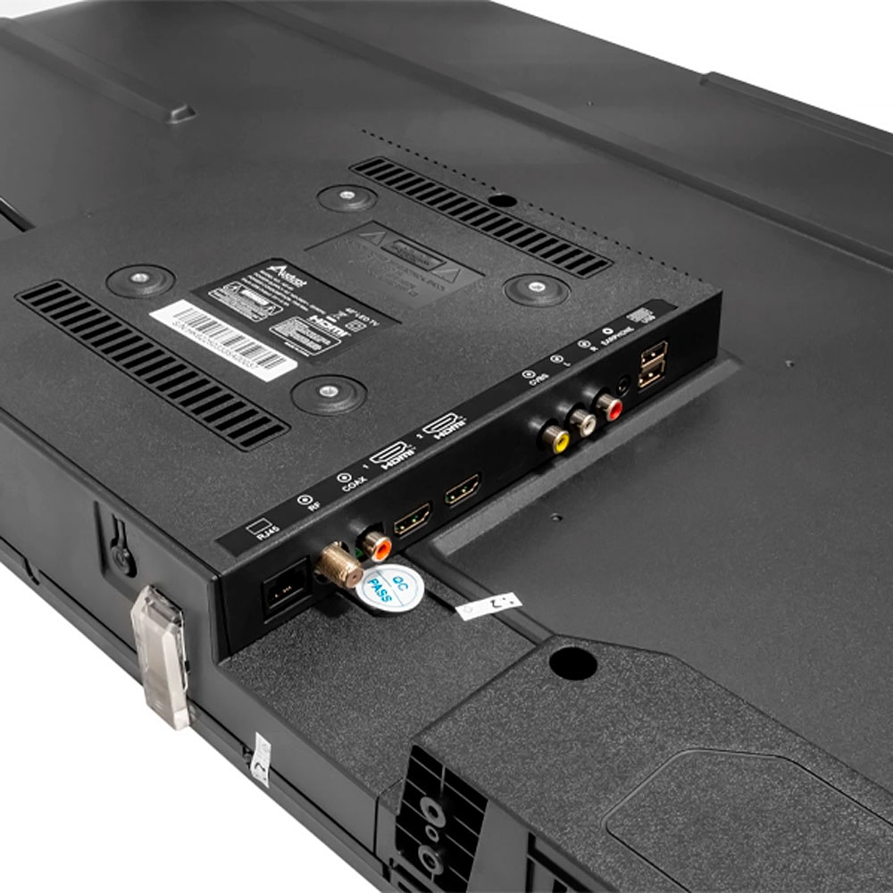 O modelo AD-40 também se destaca pela variedade de conexões: são 2 entradas HDMI, 2 portas USB, A.V IN, entrada coaxial, RF IN, auxiliar Mini Jack 3.5 mm e porta Ethernet. Essa diversidade facilita a conexão de videogames, caixas de som, pen drives e outros dispositivos de maneira prática e rápida. Os alto-falantes integrados oferecem um som claro e equilibrado, complementando a experiência de imagem com qualidade de áudio.