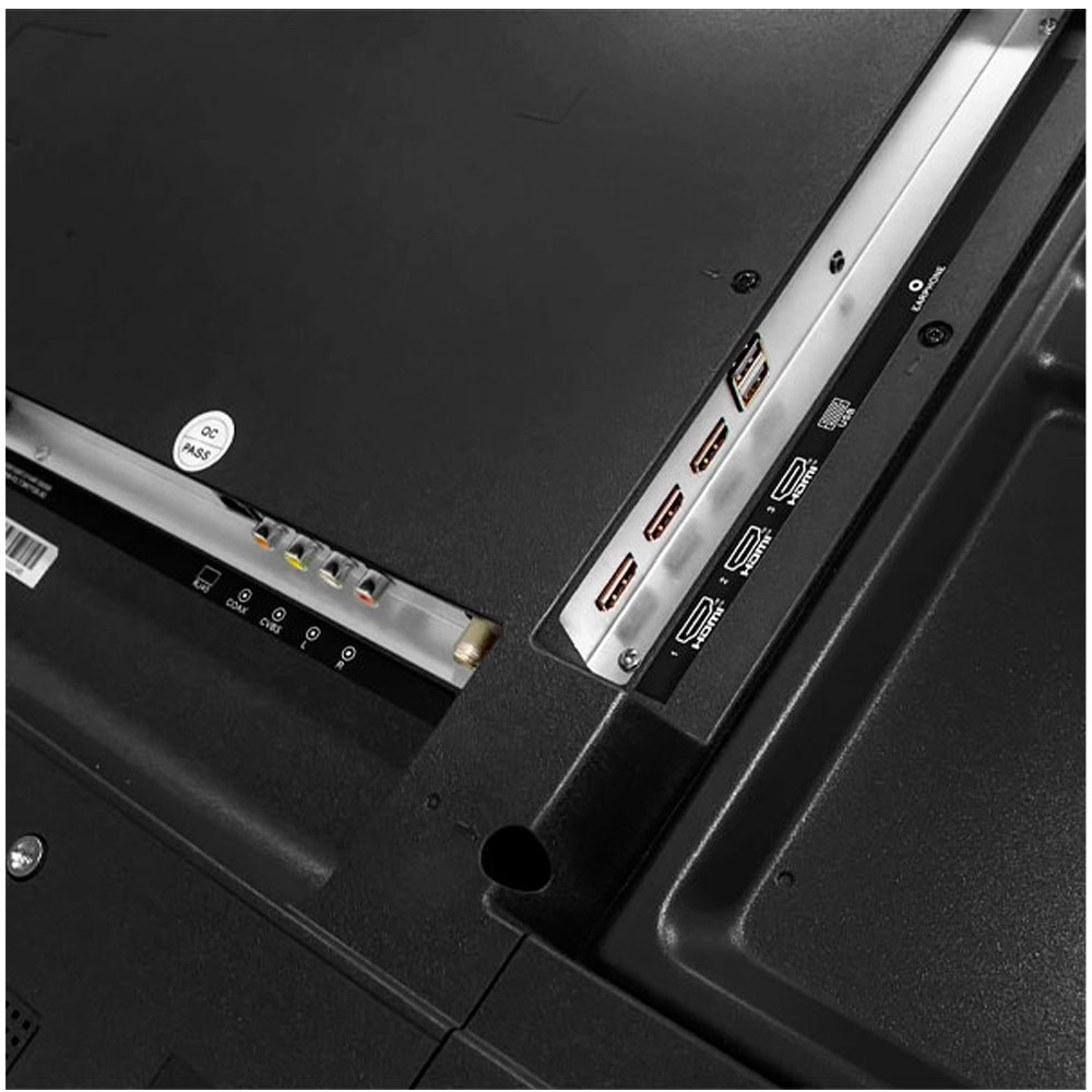 Sua conectividade é completa, contando com Wi-Fi para conexão sem fios e múltiplas portas que facilitam a integração com outros dispositivos: 3 entradas HDMI, 2 portas USB, A.V IN, RF IN, entrada coaxial, auxiliar Mini Jack 3,5 mm e porta Ethernet para conexões estáveis e rápidas.