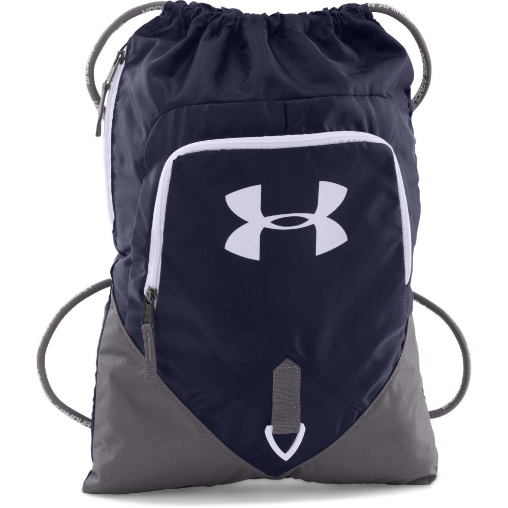 Under Armour inspira você com soluções de desempenho que você nunca soube que precisava e nem imagina viver sem.Bolso lateral para objetos de valor forrado com material de tricô macioFio simples facilmente ajustávelClipe de esterno personalizado UABolsos frontais para armazenamento e organização extraAnel D no painel frontal para ponto de fixação adicionalAdequado para um par de tênis + uma bola de basquete de tamanho oficialDimensões quando completo: 19 “H x 15” L x 2 “WVolume: 1500 polegadas cúbicas. / 25 L100% Poliéster