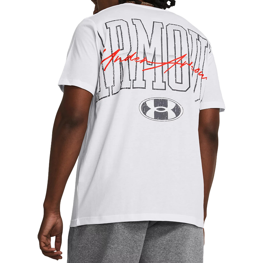 Tecido Leve e Suave: O tecido desta camiseta é uma combinação perfeita de algodão e poliéster. Isso significa que você obtém o conforto suave do algodão com a durabilidade e a capacidade de secagem rápida do poliéster. Ideal para dias quentes ou para atividades físicas intensas.Gráficos Impressos: O gráfico da UA no peito esquerdo é discreto, mas mostra sua afinidade com a marca. Já os grandes gráficos nas costas são ousados e chamam a atenção. Seja para um visual casual ou para se destacar na academia, esta camiseta tem você coberto.