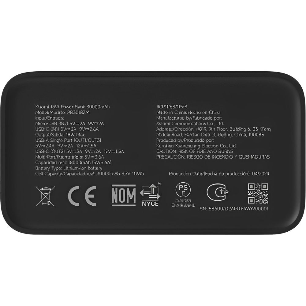 Carregador Portátil Xiaomi 18W Power Bank 30.000 mAh GL 58600 BHR9126GL PB3018ZM